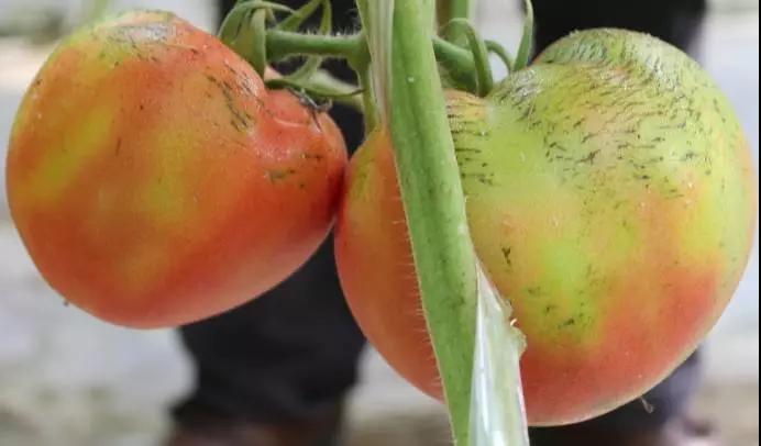 3.果实表面夜间结露,白天气温升高后水分从番茄表面快速蒸发,这种刺激会造成皴皮。