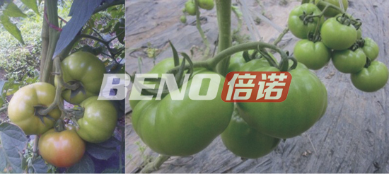 “刚开始接触倍诺就是因为它是纯真自然的品质让我感兴趣,我是在番茄定植后开始用的,第一次使用6天之后,番茄叶片颜色变的深绿了,整株的长势比没用过的明显要好。在盛花期的时候用了第二遍,接下来就每10天用一次,那个时候刚好流行番茄疫病和黑斑病,我的番茄一直都好好的,到盛果期后畸形果一个也没有,这个时候我才真正相信倍诺不但不含激素而且绝对能抗