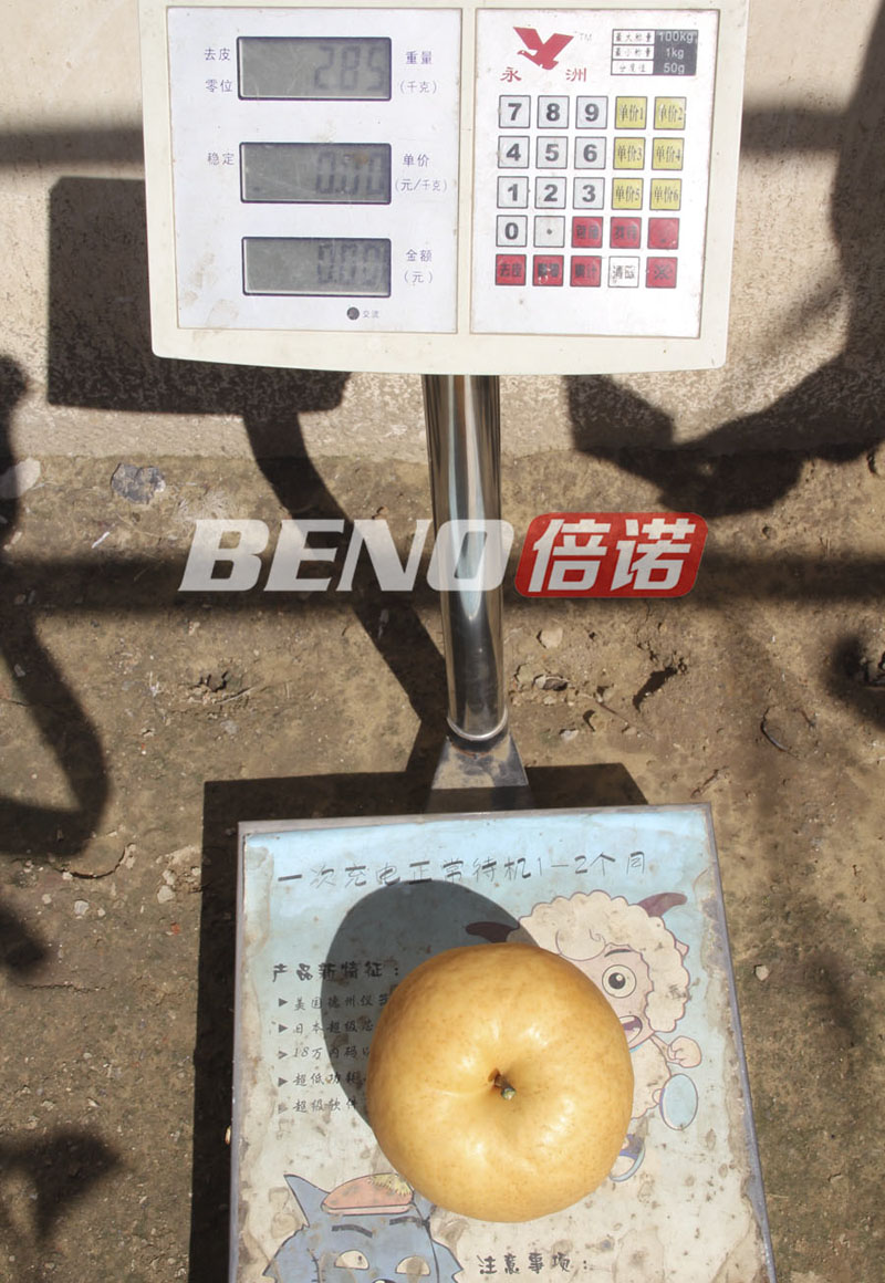 距离销售办公室只有十几分钟路程的梨园里,宋大伯激动的告诉大家,天价梨不是夸张,一个香港团游客于十月三号来了一次国庆假期采摘游,面对这么大个儿的富硒梨,港友觉得真稀奇,并且为了园里4斤3两的梨王赎了身,400RMB!!!“天价梨”由此而来~ 虽然无缘见到高身价的梨王,看看宋大柏随手采摘的一个梨也达到了2.85斤,哈哈,小编表示,这么大的梨,真心啃不完……