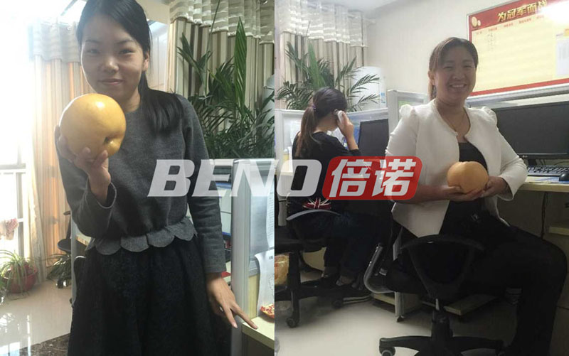 宋大伯告诉我们说,其实今年的梨能长成这样,衷心的感谢咱们倍诺的产品。之前因为梨树叶子发黄严重,才开始用咱们的产品,没想到每打一次都有意想不到的效果,所以今年就一直坚持用。